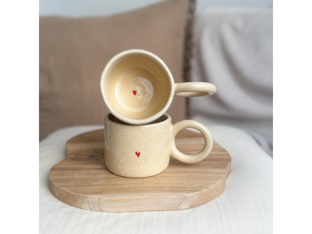 Hrnek o objemu cca 180 ml je vypalován na vysoké teploty v elektrické peci.