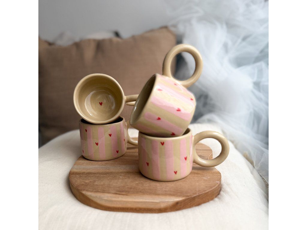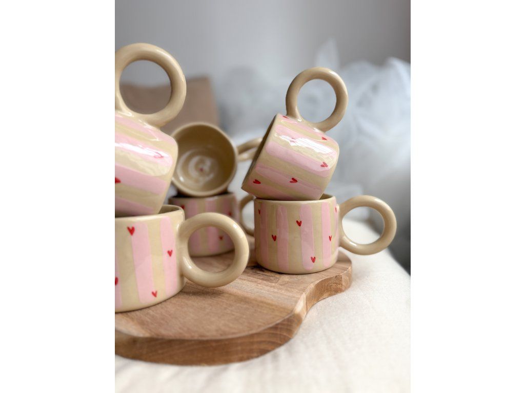Veškeré hrnky jsou ruční tvorba, proto prosím berte v potaz, že se mohou lehce lišit ve tvaru a dekoru od vzorové fotografie.